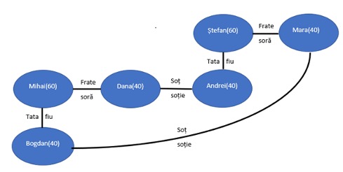 Conform relatiilor de rudenie din schema de mai sus avem (în paranteza am scris vârsta persoanelor):